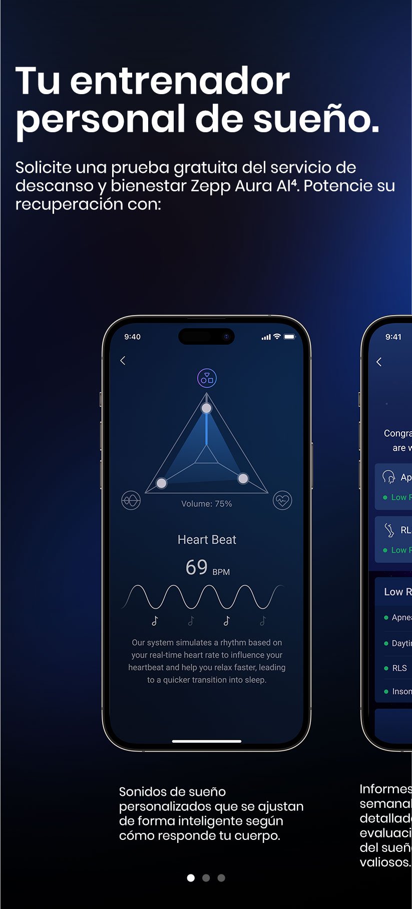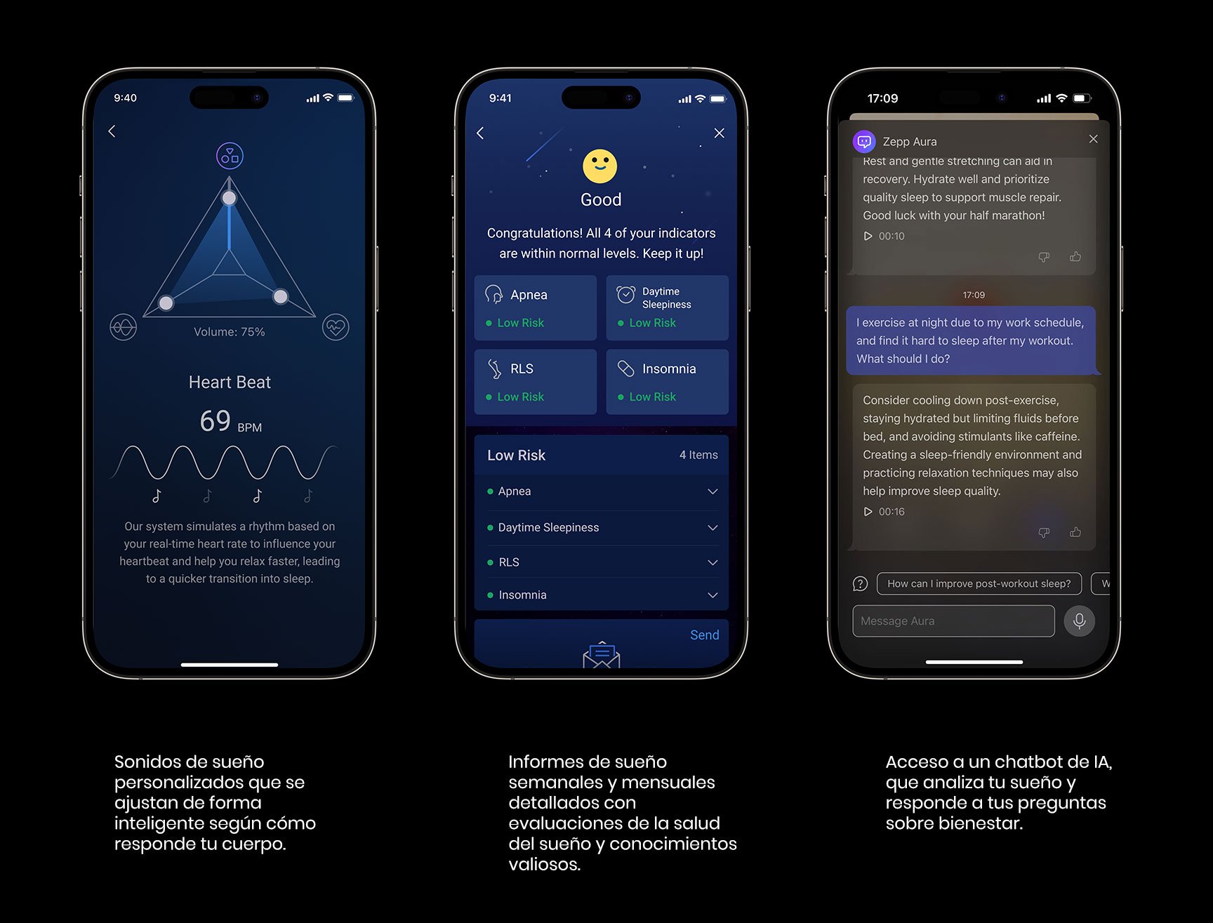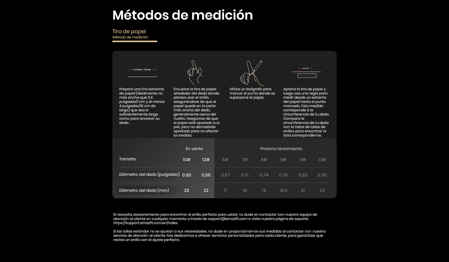 Características Destacadas Monitoreo Avanzado de Salud y Rendimiento Registra frecuencia cardíaca en reposo, HRV, carga de entrenamiento y calidad del sueño. Evalúa fatiga muscular y recuperación fisiológica. Ofrece información detallada sobre respiración y temperatura corporal. Recuperación Inteligente con Datos de Alta Precisión Fusiona información con relojes Amazfit compatibles para un análisis aún más completo. Presenta un puntaje de preparación diario basado en múltiples métricas biométricas. Sugiere tiempos de descanso y entrenamiento óptimos según tu nivel de recuperación. Diseño de Alta Gama y Máximo Confort Titanio de grado aeroespacial: Material hipoalergénico, resistente y liviano. Menos de 4 g de peso y solo 2.6 mm de grosor para una experiencia de uso imperceptible. Resistente al agua 10 ATM, ideal para natación y deportes acuáticos. Análisis Avanzado del Sueño con IA Detección de fases de sueño: Ligero, profundo y REM. Monitoreo de siestas diurnas y calidad de la respiración nocturna. Compatibilidad con Zepp Aura, un asistente de sueño con IA que ofrece sonidos personalizados y análisis detallados. Carga Rápida e Integración con Apps de Fitness Carga inalámbrica rápida en menos de 1h 40 min. Hasta 4 días de autonomía en uso estándar. Compatible con Strava, Adidas Running, Komoot, Google Fit y Apple Health. Especificaciones Técnicas Material: Aleación de titanio en el exterior y resina en el interior. Dimensiones: 8 mm de ancho y 2.6 mm de grosor. Tamaño: 10 (diámetro de 20mm Sensores: Sensor óptico BioTracke PPG para frecuencia cardíaca y SpO Sensor EDA para monitoreo del estrés y respuesta emocional. Sensor de temperatura y acelerómetro de 3 ejes. Conectividad: Bluetooth BLE, sincronización con Zepp App Resistencia al agua: 10 ATM (hasta 100 metros de profundidad).
