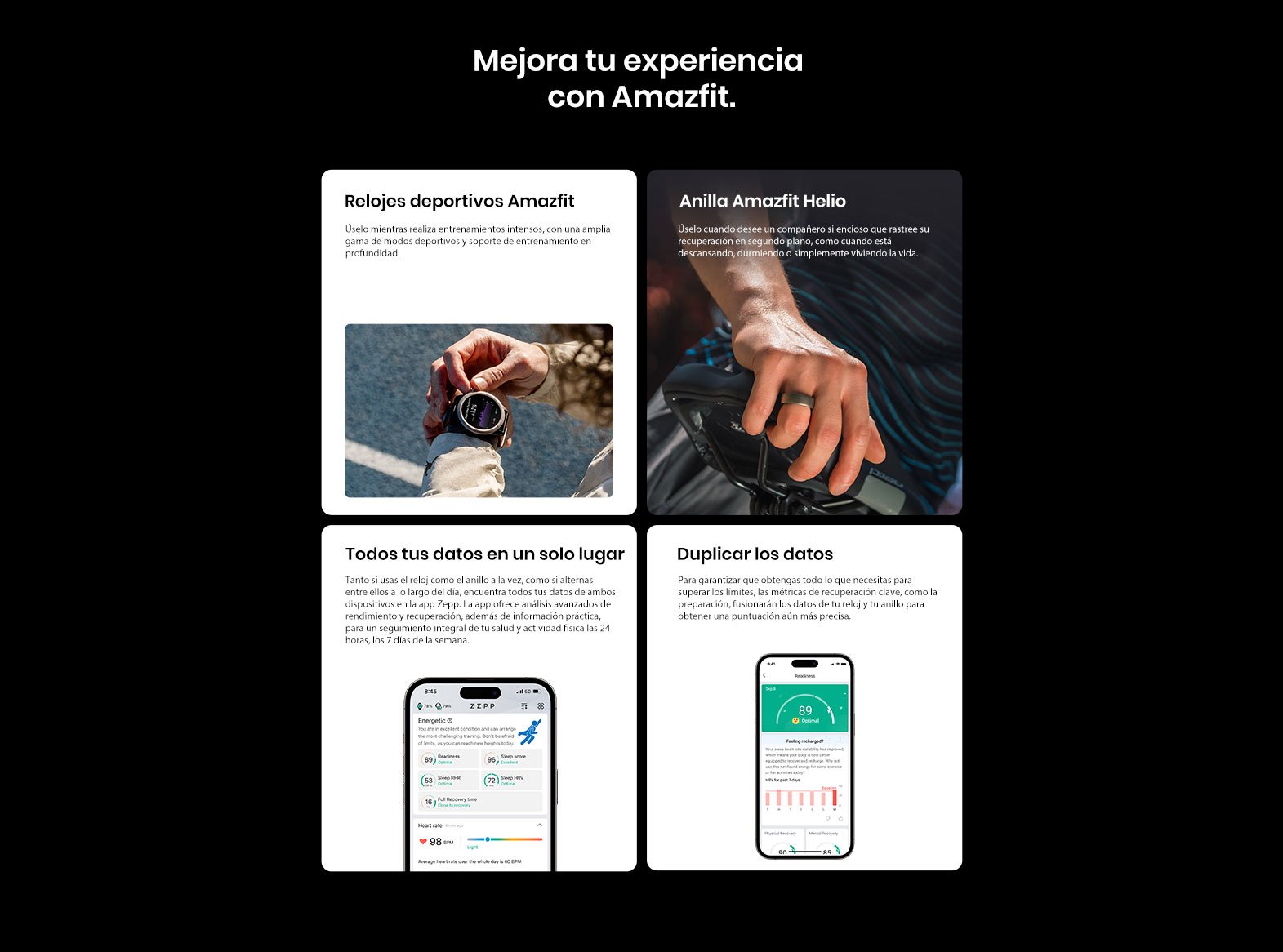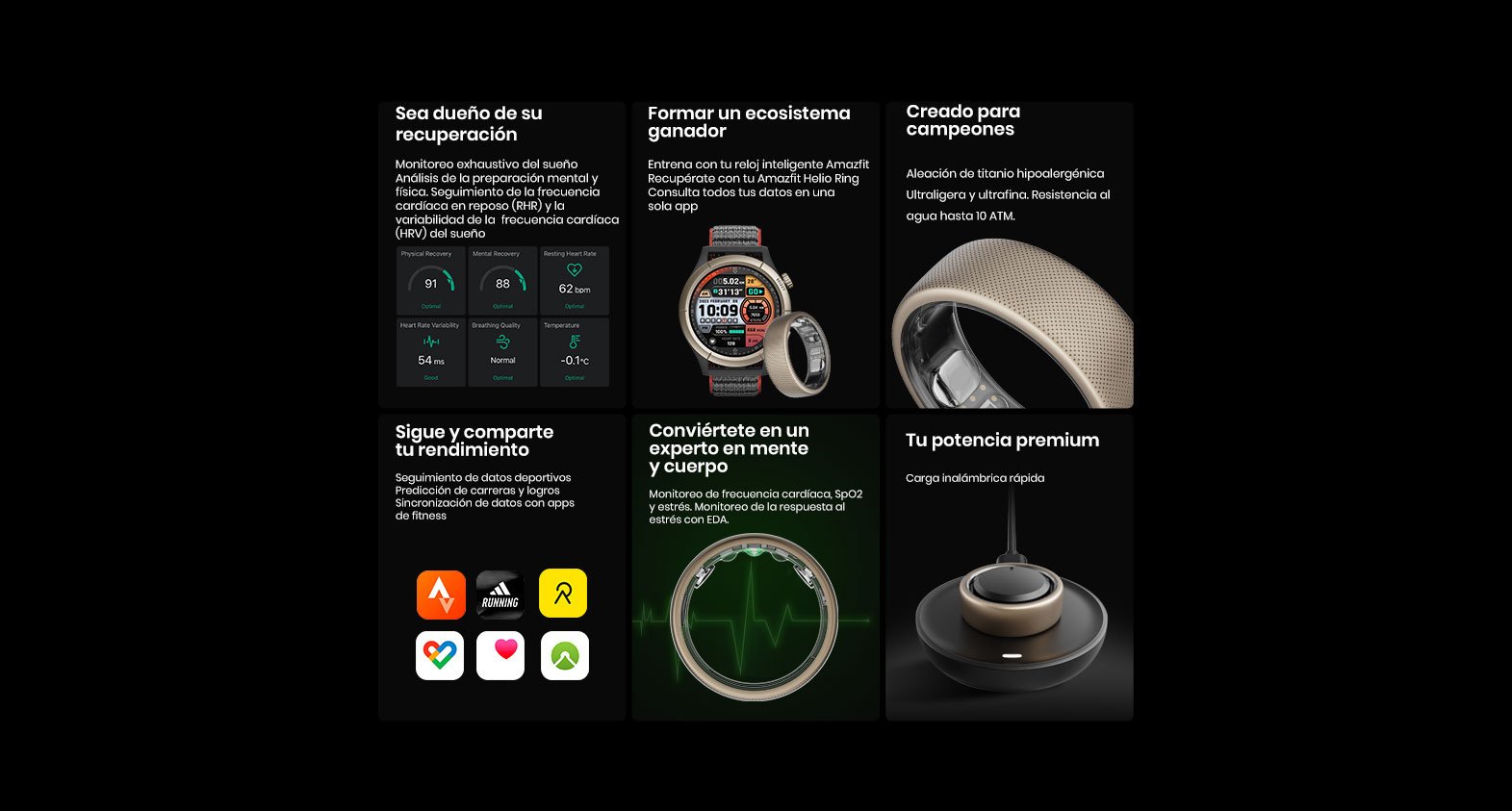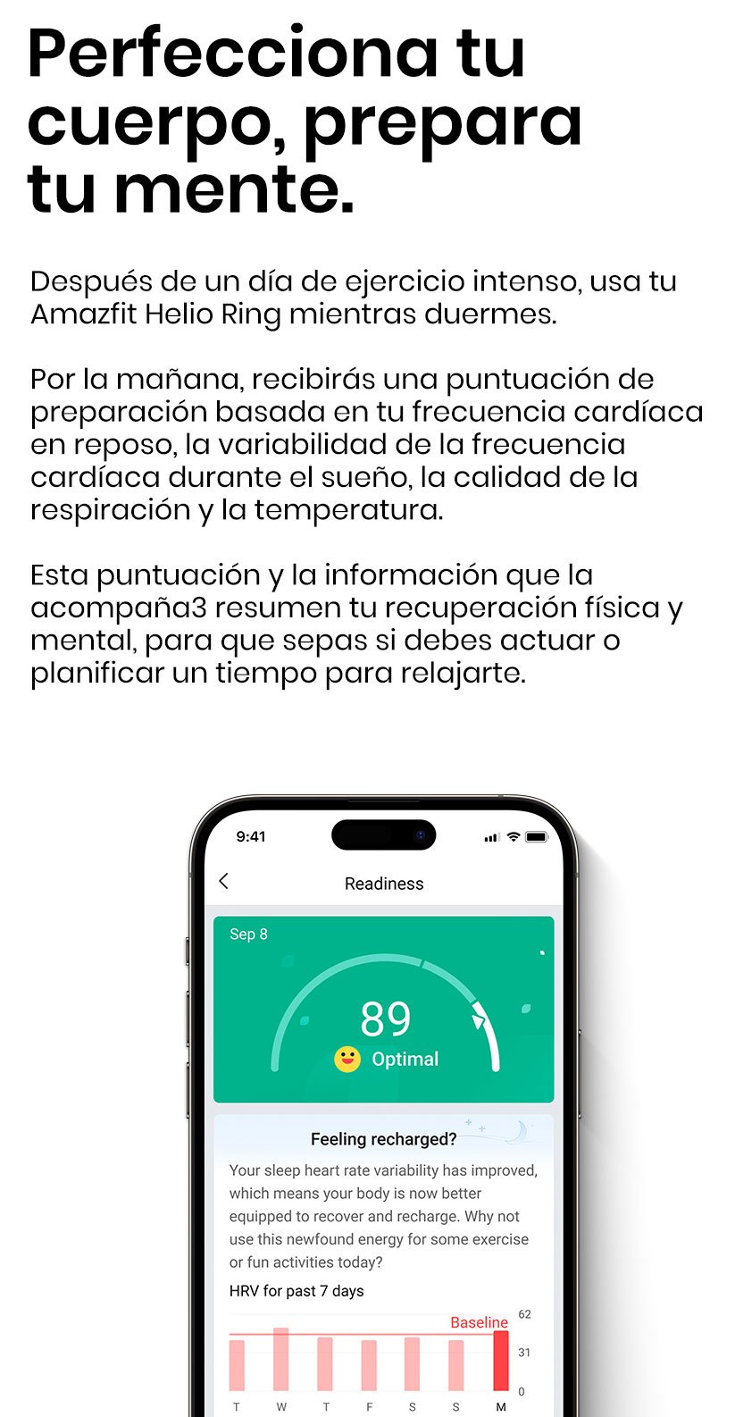 Amazfit Helio Ring – Precisión, Recuperación y Rendimiento en un Anillo Inteligente El Amazfit Helio Ring es un dispositivo innovador diseñado para atletas de alto rendimiento y entusiastas del fitness que buscan maximizar su recuperación y optimizar su desempeño físico y mental. Su tecnología avanzada permite monitorear frecuencia cardíaca, variabilidad del ritmo cardíaco (HRV), niveles de fatiga, calidad del sueño y recuperación muscular con precisión excepcional.